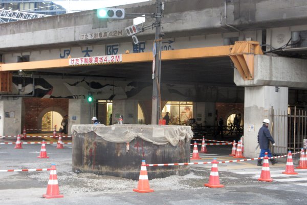 昼、うどんを食べながらテレビニュースを見てたら、新御堂筋・茶屋町あたりで、とつぜん巨大な鋼管が隆起したという。