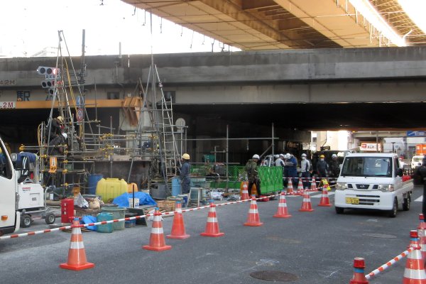 一昨日の鋼管隆起事件で新御堂筋(豊崎から南)が通行止め。