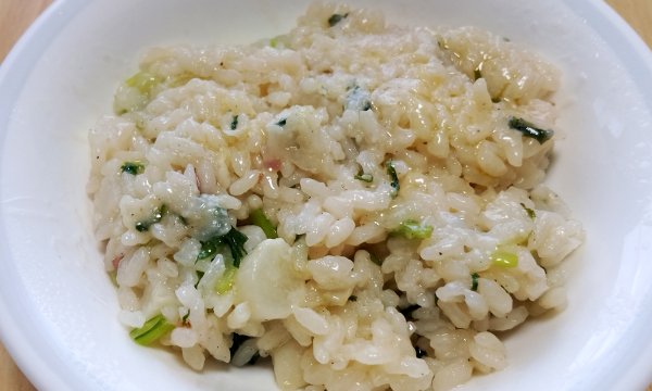 最後に「七草リゾット」が出てきた(↑専任料理人がスマホで撮影)。