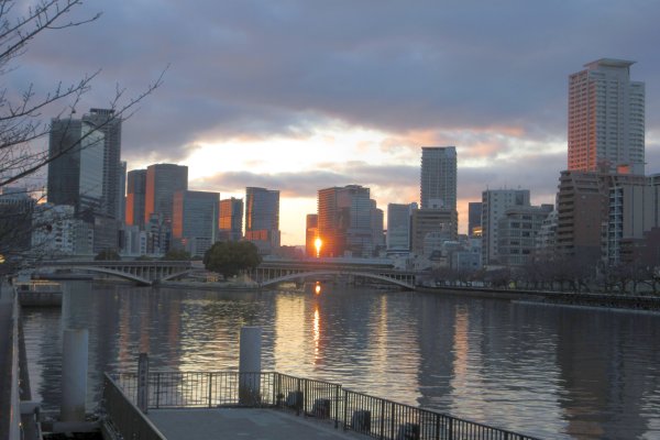 昼前に出て、田蓑橋から堂島川の川面を眺める。