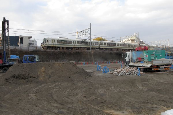 途中、豊崎神社のJR線路を挟んだ南側(もとJRバスの駐車場)の更地で工事開始である。