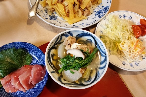 午後、専任料理人のお伴で天八のスーパーまで、液体系重量物のポーターとしてついて行く。