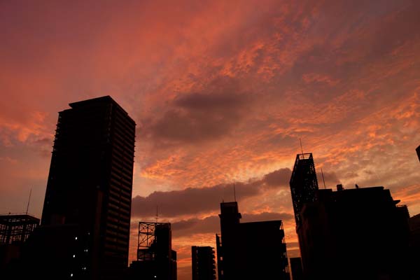 早朝のニュース番組の画面に、やたら大雨警報、竜巻注意報が流れる。大阪府全域らしいが、例によって北区はたいしたことなし。