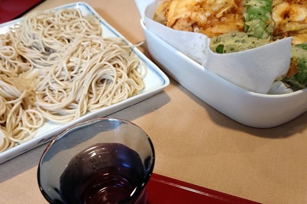 専属料理人が蕎麦を茹で、掻き揚げ天を揚げた。