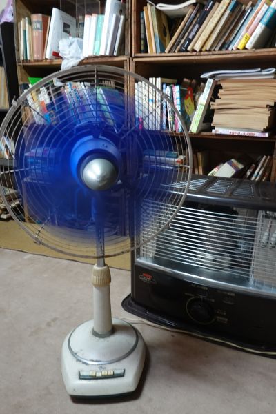 片づけが面倒で、この10年、書斎にはストーブと扇風機が並べてある。