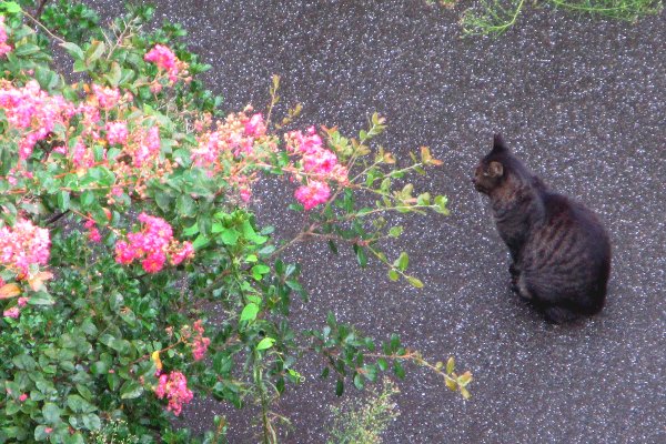15時にとつぜん激しい驟雨。15分ほどでやむ。ゲリラ豪雨とはならず。いい打ち水になった。