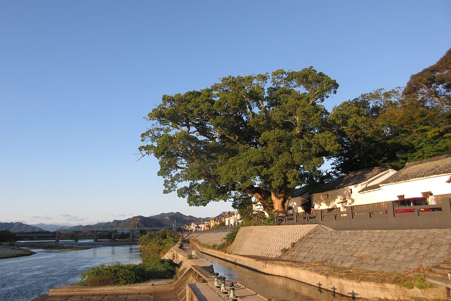 夕刻、犬の散歩を兼ねて揖保川べり、楠の木のある川沿いの道を歩く。