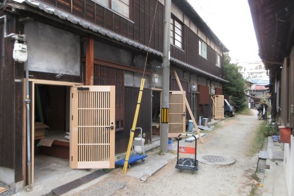 「豊崎の長屋」が改装中である。外観は保たれ、内部だけ変わるのか。来春が楽しみな。