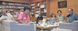 17時から、館長室の応接コーナーで、石毛先生の手作りオードブルとともに、ビール、ワイン、日本酒が並ぶ。小松さん、それに副館長や久しぶりの杉田繁治教授らも同席で10人以上の懇親会になる。
